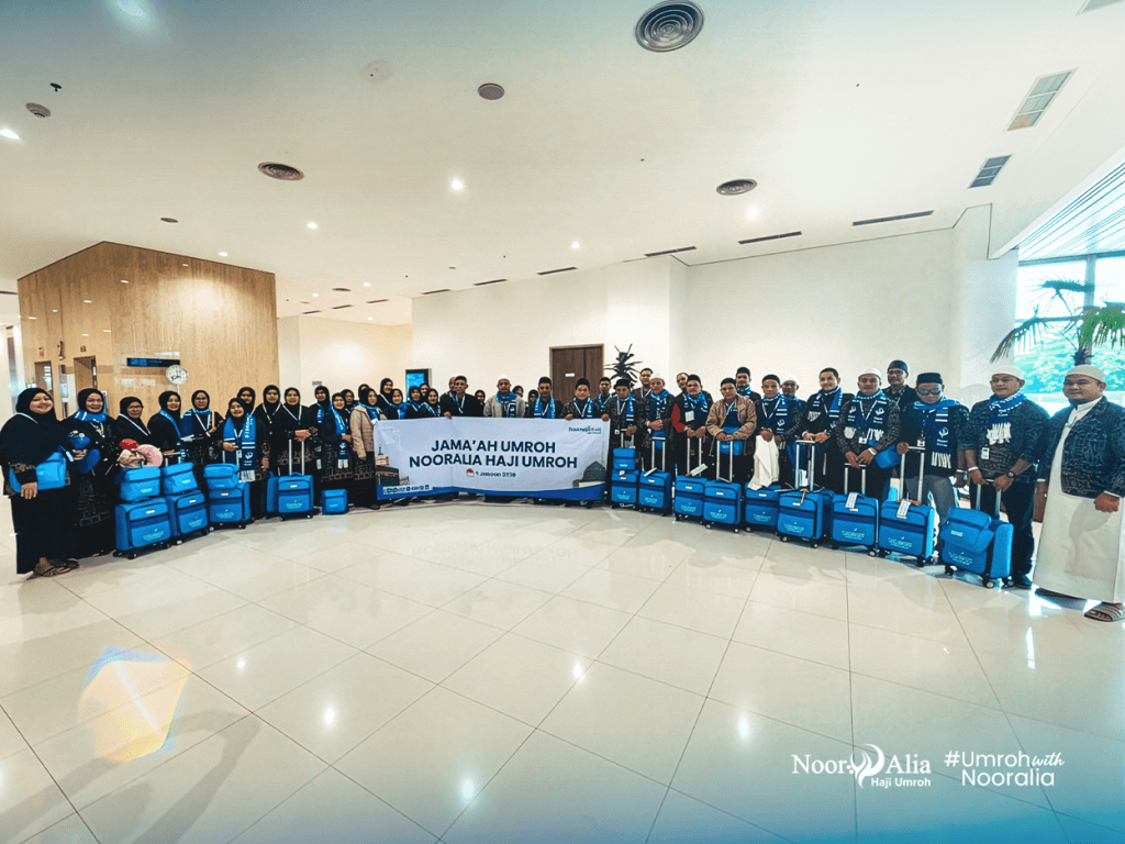 - Perlengkapan : Koper kabin, koper bagasi, tas paspor, kain ihram/mukena, sandal, buku manasik, kain seragam, syal, & sabuk